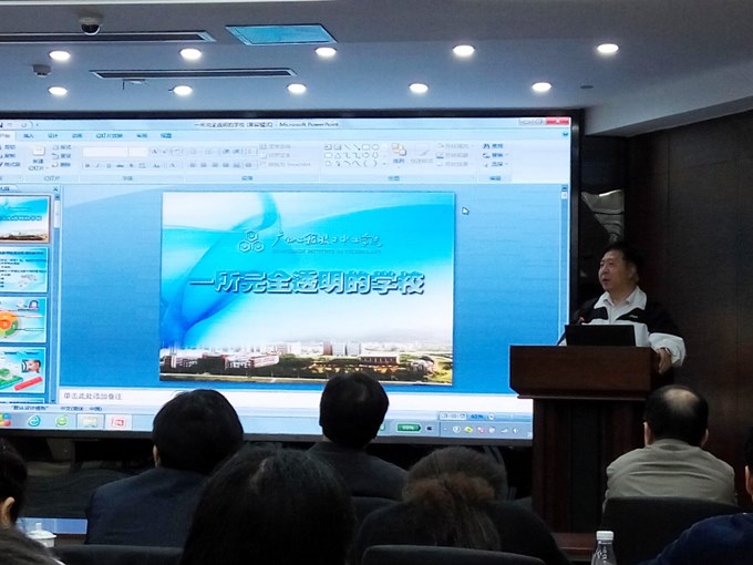 會上,廣州工程技術(shù)職業學院信息中心張晞主任對CRP係統的開發做了總體介紹。隨(suí)後,開發團隊成員分別就後勤、學工、教學功(gōng)能模塊(kuài)的使用做了詳細演示。會上,廣州工(gōng)程職業技術學院原院長樊(fán)至光教授做了主題為《建立一所透(tòu)明學校》的報告(gào),他指出透明的學校是全數據化的、公(gōng)平的、自動(dòng)的、高效的、學習型學校。他強調,在數據時代,透明是必要選項(xiàng),透明就是競(jìng)爭力。