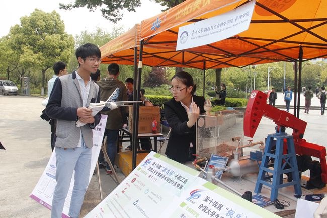展會上展出了我校學生創新團隊(duì)最新的科(kē)研成果和創意產品,其中包括《嗜熱細菌前(qián)期開發及其(qí)在汙水處理中的應用》、《防彈衣合成材料聚苯硫醚新工藝》、《石化企業電能耗監測與節能診斷雲平台》等“挑戰杯”國賽獲獎項目。展會上還推出(chū)了多項互動參與(yǔ)活動,吸引廣大師生參與其中,讓大家近距離接觸科技、了解(jiě)科技。