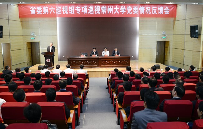 省委第六巡視組全體成員,常(cháng)州大學(xué)黨政領導班子成員,校紀委、黨委組織部(bù)領導班子全體成員,各部門、學院負責同誌以及教職工代表出席了反(fǎn)饋會議。