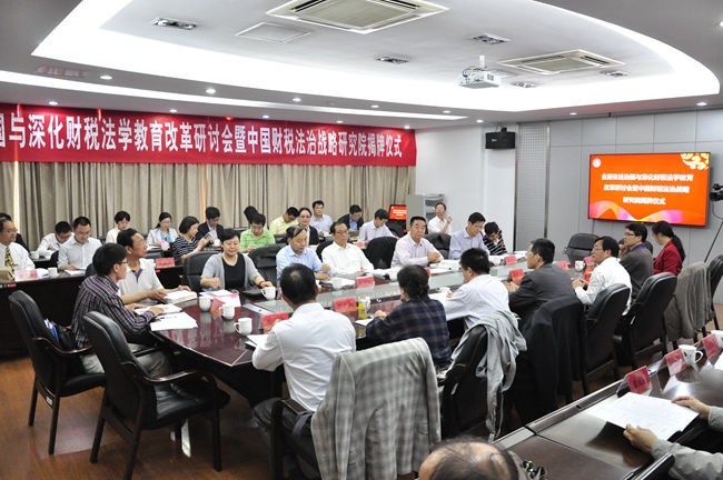 為進一步推動法(fǎ)學(xué)教育改革,教育部(bù)高等(děng)學校法學類專業教(jiāo)學指導委員會秘書處與常州(zhōu)大學聯合舉辦的第十屆中(zhōng)國財稅法前沿問題高端論壇——全麵依法治國與深化財稅法學教(jiāo)育改革研討會暨中國財稅法治(zhì)戰略研究院揭(jiē)牌儀式於5月14日在常州大學舉行。來自國家財政部、中國法學會、國家稅務總局(jú)、海關總署、常州市(shì)地稅局以及北京大學(xué)、中國政法(fǎ)大(dà)學、南京大(dà)學、武漢大學、上海交通大學、華東政法大學等政府部門和高等(děng)院校(xiào)的四十多位嘉賓應邀參加會議。