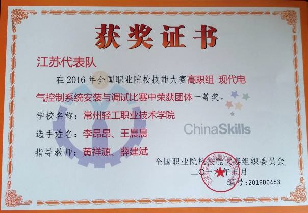 5月11日,全國職業院校(xiào)技(jì)能大賽(高職(zhí)組)“現代電氣控製係統安裝與調試(shì)”賽項在天津落下帷(wéi)幕,我(wǒ)院電子係參(cān)賽團隊榮獲得一等獎。