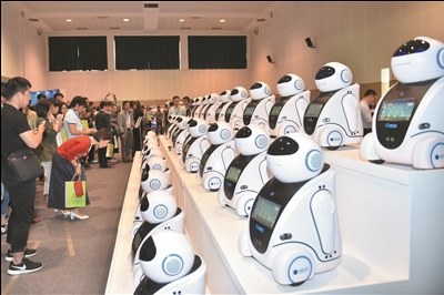在展區另一側,30台全新(xīn)陪伴智能機器人“優弟”,吸引了客商們的目光。該款機器人由常州智保機器人科(kē)技有限(xiàn)公司針對313歲孩子(zǐ)研(yán)發,是一款集幼(yòu)兒(ér)教育和陪伴成長於(yú)一體的智(zhì)能服務型機器人。“優弟”依托哈工(gōng)大機器人研究所強大技術(shù)支持,擁有人臉識別、語音識別、遠程操控、體感交互、PM2.5監測等技術,可實現(xiàn)人機對話、遠程(chéng)監控、視頻通話、內容智能點播等多種功能。據技術人員介紹,“優弟”今年4月正(zhèng)式上架,目前(qián)在網絡淘寶店和實體店均有售,價格不到4000元(yuán)。