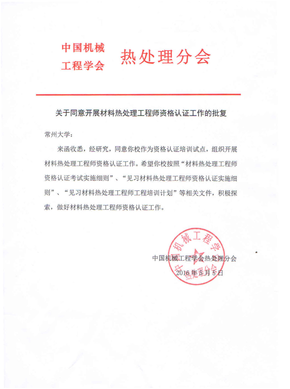 常州大學(xué):我院成為材料熱處理工程師資格認證培訓試(shì)點(diǎn)單位
