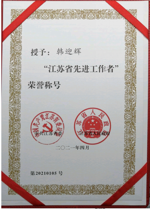 4月30日,2021年江蘇省勞動(dòng)模範和先進工作者表彰大會在南京舉行。會上,我校(xiào)智能控製學院副院(yuàn)長韓迎輝榮獲“江蘇省先進工作者(zhě)”榮譽稱號。