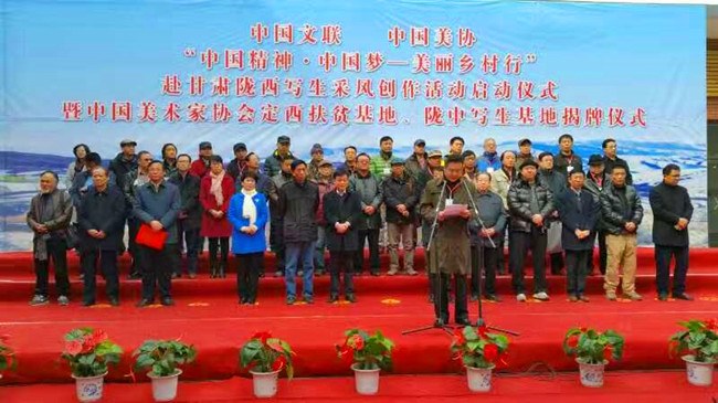 3月7日上午,由中國文聯和中(zhōng)國美(měi)協主辦,甘肅省文聯、美協和定西市(shì)委市政府承辦的“中國精神·中國夢——美麗鄉村(cūn)行”赴甘肅寫生(shēng)采風活動啟動儀式暨中(zhōng)國美術家協會定西寫生基地揭牌儀式在甘(gān)肅省隴西縣舉行。常州大學藝術學(xué)院(yuàn)遲連城教授應邀參加活動。