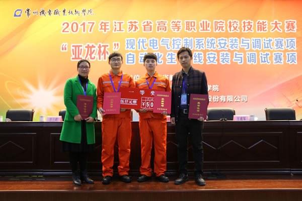 “自動(dòng)化生產線安裝與調試”賽項為舉辦(bàn)時間最長、奪冠難度最大的省級賽項之一。2016年(nián)5月起,選手們曆經校技(jì)能月選拔(bá)和集訓,發揚“工匠精神”,堅(jiān)持“技術(shù)難度無死角”和“安裝(zhuāng)接線無止境”兩手抓。王一凡、劉豔雲兩位老師帶領選手們先後(hòu)與沙洲職業工學院、蘇州健雄職業技(jì)術學院等強隊進行交流,幫助參賽(sài)學生克服比賽現場緊張情緒,提升現場調試能力,增強了參賽自信心(xīn)。3月10日,選手(shǒu)們以(yǐ)不俗(sú)的表現完成了賽項任務,在54支參賽隊中一舉奪魁,獲得了江蘇省一等獎的好成績。