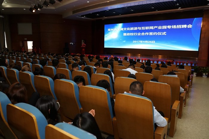中國江蘇網5月2日訊 4月26日,常(cháng)州西太湖文化旅遊產業園、西太湖互聯網產業園(yuán)在常州輕工職業(yè)技術學院設立專場招聘會,招聘旅遊係、信息工程係、藝術設計係、經貿管理係(xì)的旅遊(yóu)、互聯網、商貿、藝術設計等相關(guān)專業的學生。常州西太(tài)湖產業園精選出20餘家運營能力好、發展前(qián)景大的企業到學院布展招聘,共提供60個工種500餘(yú)個就業崗位。800餘名學生進行(háng)現場招聘,來自旅遊專業的大二學生陸夢椰在幾家企業(yè)前看了又看,家在無錫(xī)的她現場對一家網絡科技公司(sī)有興(xìng)趣,因為該公司在無錫有分部,而她自己有營銷經曆。