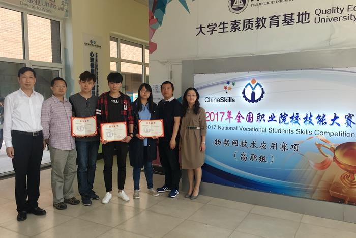 2017年全國職業院校技能大賽由教育部聯合36家部委單位(wèi)共同(tóng)主辦。高職組設有常規賽項45個大項。此次天津主賽區第一階段比賽中,我院信息工程係袁凱烽、何濤老(lǎo)師帶領黃煥林、趙子鑫、李紅芳3名學生與來自全國94支代(dài)表隊同(tóng)台競(jìng)技,最終榮獲“物聯網應用技術(shù)“賽項二(èr)等獎。