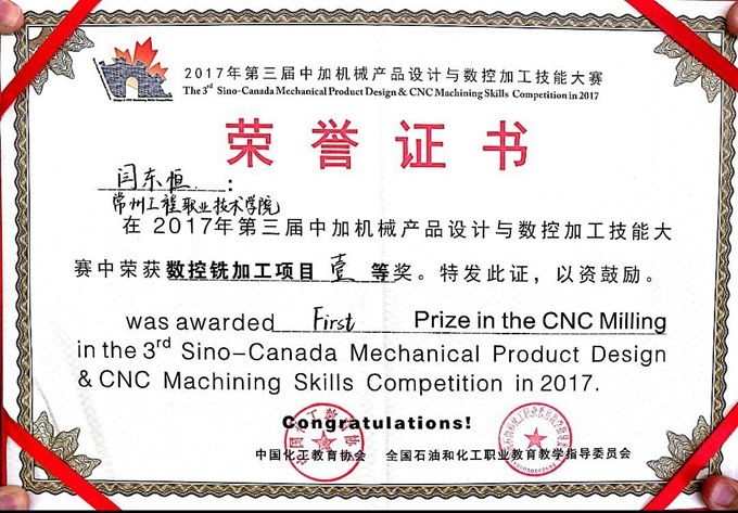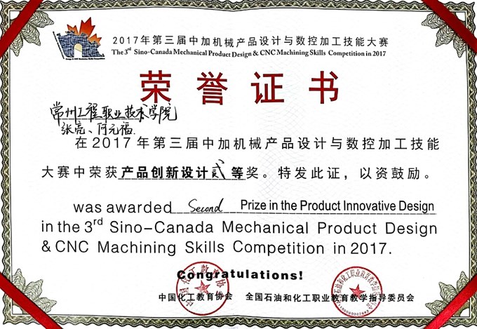 近日,由全國石油和化工職業教育教學指導委員會,中國化工教育協(xié)會聯合主辦(bàn)的“2017年第三屆中加機(jī)械產品(pǐn)設計與數控加工技能大賽”在南京科(kē)技職業學院舉行,來自加拿大(dà)和國內院校的選手(shǒu)同台競技,經過激烈角逐,我院學生獲“數控銑(xǐ)加工項目”一等獎、“數控車加工項目”二等獎、“產品創新設計”二等獎。