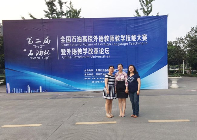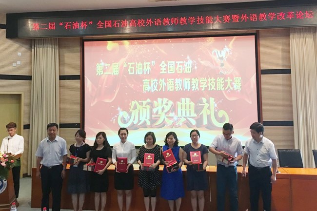 714-16日,由全國石油高校外語教學與研究協會主(zhǔ)辦、西(xī)南(nán)石油大學承辦的第二屆“石油(yóu)杯”全國石油高校外語教師教學技能大賽暨外語教學改革論壇在成都舉行。來自(zì)中國石(shí)油(yóu)大學、東北石(shí)油大學、西(xī)南石(shí)油大學、西安石油大學、長江大學、廣東石油化工學院、遼(liáo)寧石油(yóu)化工學院、北京石油化工學院、重慶科技學院、承(chéng)德石(shí)油高等專(zhuān)科學校以及我校共13所石油高校(xiào)的40餘位一線外語教師代表參加(jiā)。我校周有光語言文化學院悉心組(zǔ)織,老師們認真備賽,最終談文、韋倩兩位老師獲得二等獎,邱菲(fēi)老師(shī)獲得三等獎。