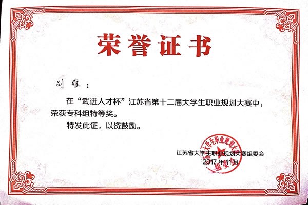 11月(yuè)28日,由江蘇省教育廳主(zhǔ)辦、省高校招生就業(yè)指導服(fú)務中心承辦的“江蘇省(shěng)第十二屆大學生職業規劃大賽”在常州工程職業技(jì)術(shù)學(xué)院落下帷幕。此次大賽共有全省114所學校推(tuī)薦的318名選手參(cān)加,24名選手入圍專科組決賽。我校經貿學院劉維同學榮獲專科組特(tè)等獎,被評為“職(zhí)業(yè)規劃之星(xīng)”。