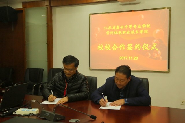 11月29日,泰興市教(jiāo)育(yù)局副局長朱留榮、泰興中(zhōng)專校長潘曉群、副校長劉正生、招(zhāo)生就業處處長葉國俊一(yī)行來校(xiào)交流,並與我校簽署了校校合作協議。我校(xiào)黨委副書記朱平出席簽約儀式。招生(shēng)辦主任顧久賢、機械工(gōng)程學院院長劉江、招生聯絡處主任董斌參加了簽約儀式。
