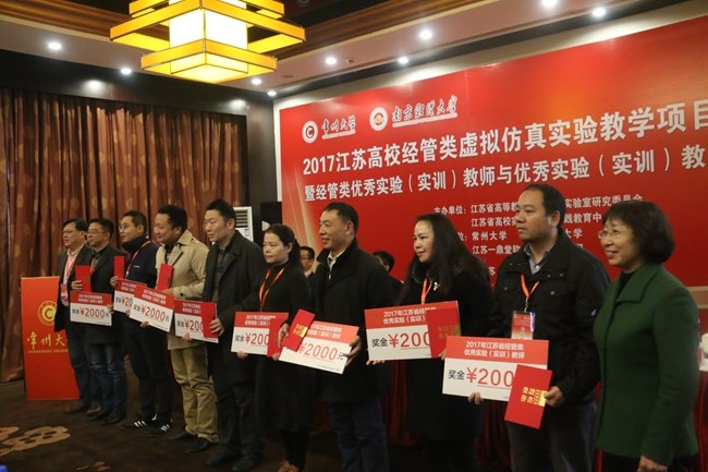 王衛星代表常州大學對各位領(lǐng)導和嘉賓的到來表示歡迎。胡凱圍繞高校實驗室建設思路進行了簡要闡述。陸華良對江蘇省高校(xiào)實驗教學與實踐教育中心聯席會的成立及發展進行了介紹(shào)。開幕式上舉行了2017首屆江蘇高校經管類優秀實驗(實訓)教(jiāo)師與優秀實驗(實訓)教學案例頒獎儀式。江南大學何家鳳、我校商學院楊足膺等8名老師榮獲省優秀實驗(實訓)教師;南京審計大學陳海(hǎi)勇、我校商學院潘偉強等4項主編案例獲省優秀實(shí)驗(實訓)教學案例。