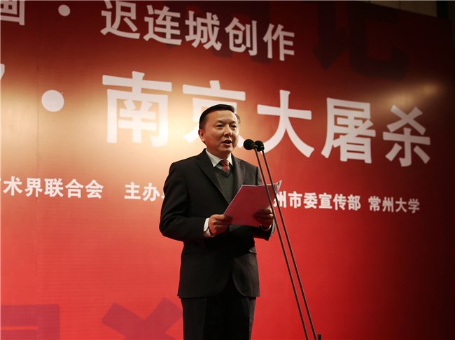 開幕式(shì)由陳(chén)群主持,他表示(shì)由常州市委宣傳部和常州大(dà)學策劃並組織專家論證,常州大學遲連城教授創作的大型曆(lì)史組畫《銘記·1937·南京大屠殺》是為了祭奠死難同胞(bāo),牢記曆史創傷,吸取曆史(shǐ)教訓,捍衛和平不被褻(xiè)瀆,讓(ràng)每個人在內心都(dōu)播下和平的種子,讓和平的陽光在世界的每個角落都永恒存在。希望常州大學全體師生(shēng)以此次活動為契機,牢記曆史,奮發圖強,努力學習,堅定信仰,為實現中華民族偉大複興的中國(guó)夢貢獻出自己的一份力量。
