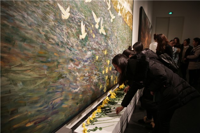 徐光(guāng)輝在講話中(zhōng)指出,《銘記·1937·南京(jīng)大屠殺》大(dà)型曆史組畫全麵(miàn)反映了侵華日軍在南京犯下的種(zhǒng)種暴(bào)行,凝固了國家記憶中(zhōng)無法(fǎ)忘卻的民(mín)族災難,展現了家仇國恨中不屈不撓的抗爭精神,具有強烈的(de)震撼力和(hé)感染力,充分(fèn)體(tǐ)現了當(dāng)代藝術(shù)家的曆史擔當(dāng)和愛國情懷(huái)。他強調,舉辦此次畫展,目(mù)的在於用藝術的形式教育(yù)當代人(rén)、教育年輕人、教育青年學生,表達中國人民牢記(jì)曆史、不忘過去,珍愛和平(píng)、開創未來的堅定立場。廣大文藝工作者要堅持以人民為中心的創作導向,把滿足人民日益增長的美好生(shēng)活需要作為創作的出發點和落腳點,用優(yōu)秀的藝術創作反映曆史變遷、記錄時代發展,舉精神旗幟、立精神支柱、建精神家園,推動中(zhōng)國特色社(shè)會主義文化繁榮興盛。