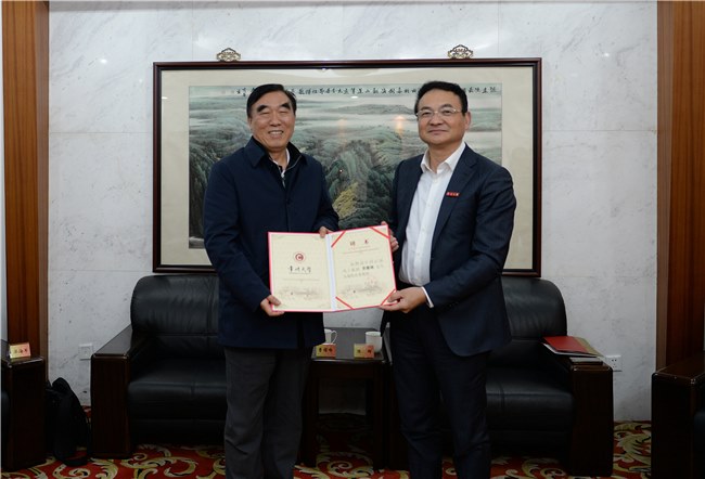 會前,陳群為曹耀峰(fēng)院士頒發了我校(xiào)名譽教授證書。(通訊員/ 嵇煒 編輯/莊媛)