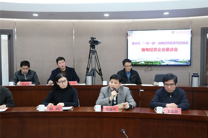 12月21日,常州市“一(yī)帶一路”研究院緬甸經貿企業(yè)座談會在我院會議中心第二會議室舉行。常州市“一帶一路”研究院王定新理事長、鄒德英副理(lǐ)事長、王其山院(yuàn)長、顧宏(hóng)祥(xiáng)副院長偕同研究員和(hé)20餘(yú)家在緬投資企業代表蒞臨座談會,我院副院長洪霄、國際交流學(xué)院院長管衛(wèi)東(dōng)及相關人員出席會議。座談會由王其(qí)山院(yuàn)長主持(chí)。