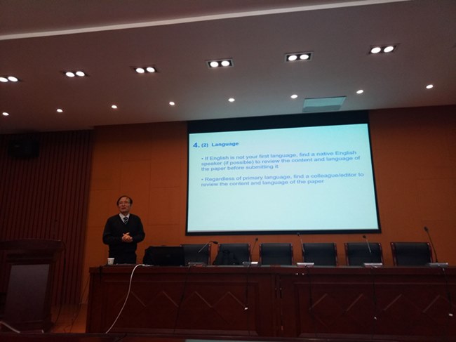 隨後,王耀東參觀了機械工程學院 城市軌道交通學院,學院相關負(fù)責(zé)人(rén)介紹了(le)學院的基(jī)本情況,雙方並就下一步的交流與合(hé)作進行了(le)交(jiāo)流。王耀東在機械工程學院 城市軌道交通學(xué)院報告廳作專題報告,從論文寫作的(de)立意入(rù)手,從論文主旨、結構、語言(yán)表達方法和寫(xiě)作技(jì)巧等方麵(miàn)深入淺出(chū)地為廣大師生講解了如何寫好一篇(piān)高水(shuǐ)平的科技學術論文。學(xué)院全體研(yán)究生和部分教師參加本次報告會。會後,王(wáng)耀東博士與學院電氣工程專業、裝備專(zhuān)業的部分師生就生物能發電、能源(yuán)高效利用等方麵進行了進一步的(de)深入交流。(通訊員(yuán)/唐龍 編輯/莊媛)