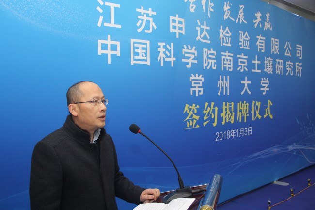 13日,常(cháng)州大學(xué)與江蘇申達檢驗有限(xiàn)公司簽約揭牌儀式順利舉行,武進區區(qū)長戴士福、副(fù)區(qū)長是峰,常州大學副校長(zhǎng)蘇旭平,中(zhōng)科(kē)院(yuàn)南(nán)京土壤研(yán)究所所長沈仁芳,常州市知(zhī)識產權局(jú)局(jú)長楊偉紅,常州市環境保護局副(fù)局長張龍,江蘇申達檢驗有限公司董事長陳偉(wěi)達出席活動。武進區建設局、環境保護局、綠建區,我(wǒ)校產學研合(hé)作處、石油化工學院、環境與安全工程學院等部門負責人參加了活動。