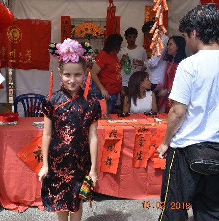這是在(zài)委舉辦的第二屆新春廟會(huì),常大孔子學院的教師連續在兩屆廟會中擔任開幕式的主持,孔院(yuàn)的學生們通過詩朗誦《靜夜思》、《元(yuán)日》、《滿江紅》以及歌(gē)曲《茉(mò)莉花》、《康定情歌》等節目,展示自己對中國文化的熱愛和理解。除了開幕式(shì)精彩的表演,常大孔院還搭(dā)建了六米的(de)大(dà)展台,展示各色中國元素:傳(chuán)統的手(shǒu)寫(xiě)春聯、喜慶的燈籠(lóng);赤青藍紫的京劇臉譜、常州特產梳篦(bì)等等,令隻知中國功夫的(de)當地民眾(zhòng)驚歎中國文化的(de)豐富多彩。孔院的委內瑞拉學生身著統一服飾,為(wéi)來賓介紹孔子、孔院,宣傳他們眼中新(xīn)時代的中國。展台上大量中文圖書以及有關中國的書籍同樣深(shēn)深吸引著到場來賓,對漢語和中華文化產生了濃厚的興趣,紛紛谘詢孔(kǒng)院的辦學情況,計劃報名學習漢語。