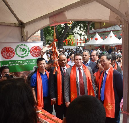 戊戌狗年之始(shǐ),江南大(dà)地瑞雪慶春,218日,由委京中華會館和委(wěi)青(qīng)聯合會主辦、常州大學玻利瓦爾大學孔(kǒng)子學院等單位承辦的2018新春廟會在委內瑞拉首都加拉加(jiā)斯隆重舉行。中國駐委內瑞拉大使李寶榮、委內瑞拉國防理事會秘書長(zhǎng)安希奧利略(luè)上將、外交(jiāo)部副部長普拉森西亞、文化部副部長索迪略、加拉加斯查考市市長杜克以及旅委華人華僑和當地民眾2000多人(rén)出席,共慶新春佳節。李寶榮在開幕式上致辭中向來賓介紹了春節的(de)由來,並由衷感謝(xiè)馬杜羅總統向中國人(rén)民(mín)和旅委華僑華人送上的新春祝福,衷(zhōng)心祝願中委兩國繁榮昌(chāng)盛、人民幸福。