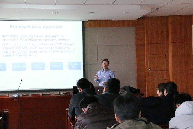 駱雁為學院(yuàn)師(shī)生(shēng)作(zuò)了題為“在邊(biān)緣計算架構上基於深度學習的飲食評估食物識別係統”的學(xué)術報(bào)告,介紹了他領導的高級計算和網絡係統實驗室的研究項目、研究方向,並結合食物識(shí)別問題介紹了一個(gè)優化了的CNN網絡模型。報告會後(hòu),駱雁(yàn)還與信息數理(lǐ)學院師生就(jiù)感興趣的研究問題(tí)進行了熱烈的交流。(通訊員/蔣蕾(lěi) 編輯/莊媛)