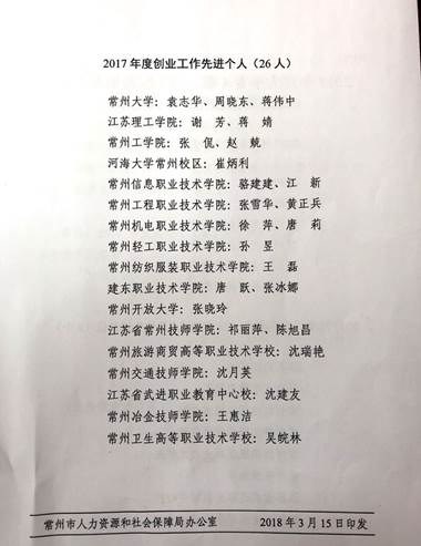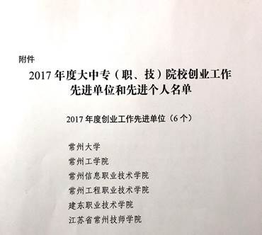 會議對(duì)2017年常州市(shì)學校就創業工作進行總結和表彰,並圍繞創(chuàng)業培訓(xùn)實施、創業項目征(zhēng)集和創業載體建設等內容對2018年的工作進行規劃部署。會上,我校創新創業教育工作得到常州市人力資(zī)源和社會保障局的充分肯定,學校(xiào)被評為“2017年度創業工作先進單位”,駱(luò)建建(jiàn)、江新兩位(wèi)老師被評為(wéi)“2017年度創業(yè)工(gōng)作先進個人”,尹麗潔老(lǎo)師獲(huò)評(píng)“江蘇省三星創業培訓講師”,朱斌同學的“基於互(hù)聯網+的企業整合營(yíng)銷”和(hé)張金鑫(xīn)同學的“成(chéng)人教(jiāo)育題庫APP” 兩個項目獲評“2017年常州市(shì)大學生優秀創業項(xiàng)目(mù)”,得到專項資助。