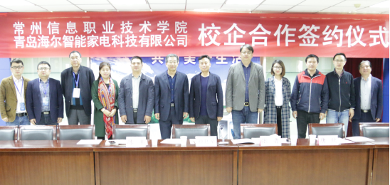 4月10日上(shàng)午,青島海(hǎi)爾智能(néng)家電科技有限公司智慧教育總經理顏廷舉、智慧教育市場總監張(zhāng)魯、智慧教育運營總監陳豐、企劃部經理唐欣一行到(dào)訪我校,洽談並簽訂校企合作協議。我(wǒ)校副校長陳剛、相關職能部門和二級學院負責人、電子與電(diàn)氣工程學院相關(guān)老師接待了來(lái)賓。