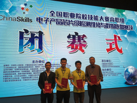 5月上旬,2018年全國職業院校技能大賽高職(zhí)組電子產品芯片級(jí)檢測維修(xiū)與數據恢複賽項決賽在寧夏舉行,我校電子與電氣工程學院梁中柱(zhù)、霍利偉同學以團(tuán)體第一名的好成績,獲得該(gāi)賽項的一(yī)等(děng)獎。