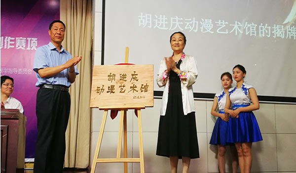 大會在一段胡進慶藝術館籌備紀實微視頻中正式拉開帷幕,教育部廣播影視(shì)專業行業指導委員會副主任委(wěi)員、山西傳媒學院院長王建國教授和我校蔣心亞院長(zhǎng)共同為常州紡院(yuàn)承建的胡進慶動漫藝術館(guǎn)揭牌。