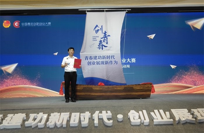 本次大賽由共青團江蘇省委主辦,於5月正式啟動,曆時三個月,全省2638個項(xiàng)目參加比賽,經過層層選拔(bá),共261個項目入圍省賽。在半決賽中,閆朝恒3分鍾的精彩路演,獲得評委(wěi)一致(zhì)認同,成功(gōng)突圍進入總決賽。決賽環節(jiē)包括6分鍾講述和6分鍾評委提問,閆朝恒立足於項目自身優勢(shì)和商業模式創(chuàng)新,在賽場上(shàng)穩定發揮,沉著應變,充分展現了青年創(chuàng)業者的優秀品質和(hé)對創業項目的(de)深刻理解,其個人實力及項目優勢(shì)深深打動了評委,最終獲得本次比賽一等獎。無錫市代理市長黃欽與共青(qīng)團江蘇省委書記王偉共同為閆朝恒頒獎。