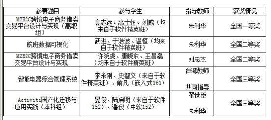 8月29日-9月1日,第七屆“中國軟件杯”大學生設計大賽在南京舉行,我校軟件技術專業的學生不負眾望(wàng),獲得了一等獎1項、二等獎2項、三等獎2項的優異成績,學校獲優秀(xiù)組織獎。
