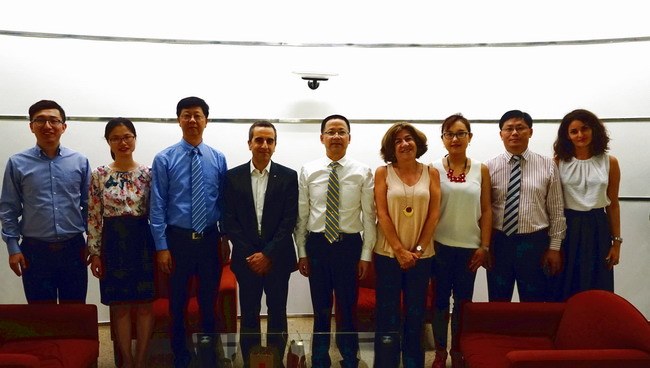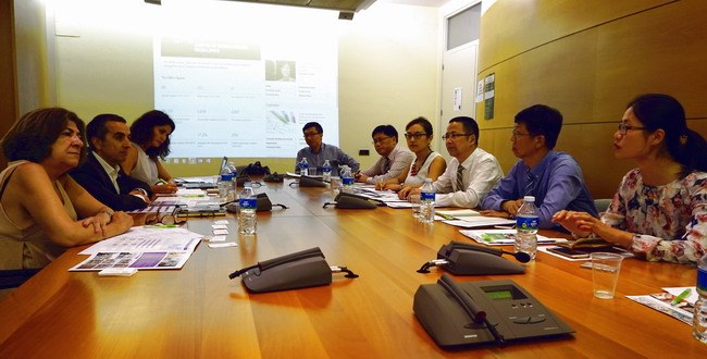 在巴塞羅那自治大學,分(fèn)管國際交流的副校長馬丁內茲(zī)先生、國際交流處處長巴拉米歐(ōu)女士一行會見了(le)我校(xiào)代表團。馬丁內(nèi)茲(zī)介紹了巴塞羅那自治(zhì)大學的教學、科研、產學研(yán)情況,並表示希望與常州大學就學生交流、教師交(jiāo)流、科研領域開展深入合作。陸錦衝對過去一(yī)年來雙方(fāng)進行的西班牙語專業學生(shēng)的學年交流項目(mù)進行了回顧,反饋了學(xué)生的評價和期望(wàng),雙方在英文授課的理工類專業學生交流、研究生交換、教(jiāo)師研修等(děng)方(fāng)麵的合作達成了共識。