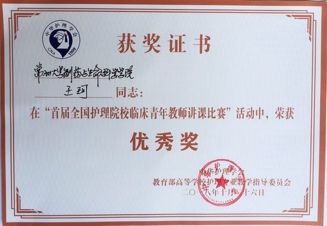 10月26日,由中華護(hù)理(lǐ)學會主辦,教育部高等學校護理(lǐ)專業教育指導委員會、山東護理學會協辦的首屆全國護理院校臨床青年教師講課比賽在山東濟南舉行。來自全國高等護理(lǐ)院校包括北京大學護理學院、北京協和(hé)醫學院護理學院等知(zhī)名院校(xiào)在內的168名臨(lín)床青年教師參賽。常州大學護理(lǐ)學(xué)院臨床青年教師、常州(zhōu)市第(dì)二人民醫院護理教研室主管護師王珂老師代表常州大學護理學院參賽,獲得優秀獎。
