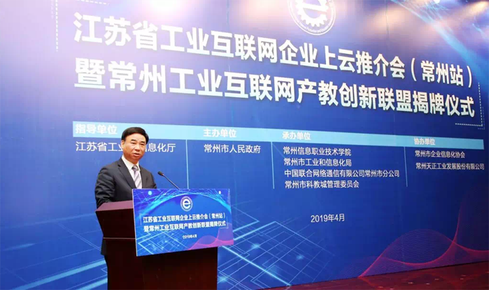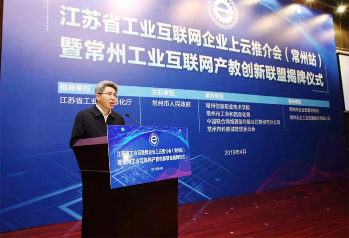 4月28日,江蘇省(shěng)工業互聯網企(qǐ)業上雲推介會(常州站)暨常州工業互聯(lián)網產教創新聯(lián)盟揭牌儀式在常州(zhōu)科(kē)教城(chéng)舉行,8家企業現場簽約“上雲”。副市長(zhǎng)梁一波出席活動並致辭。
