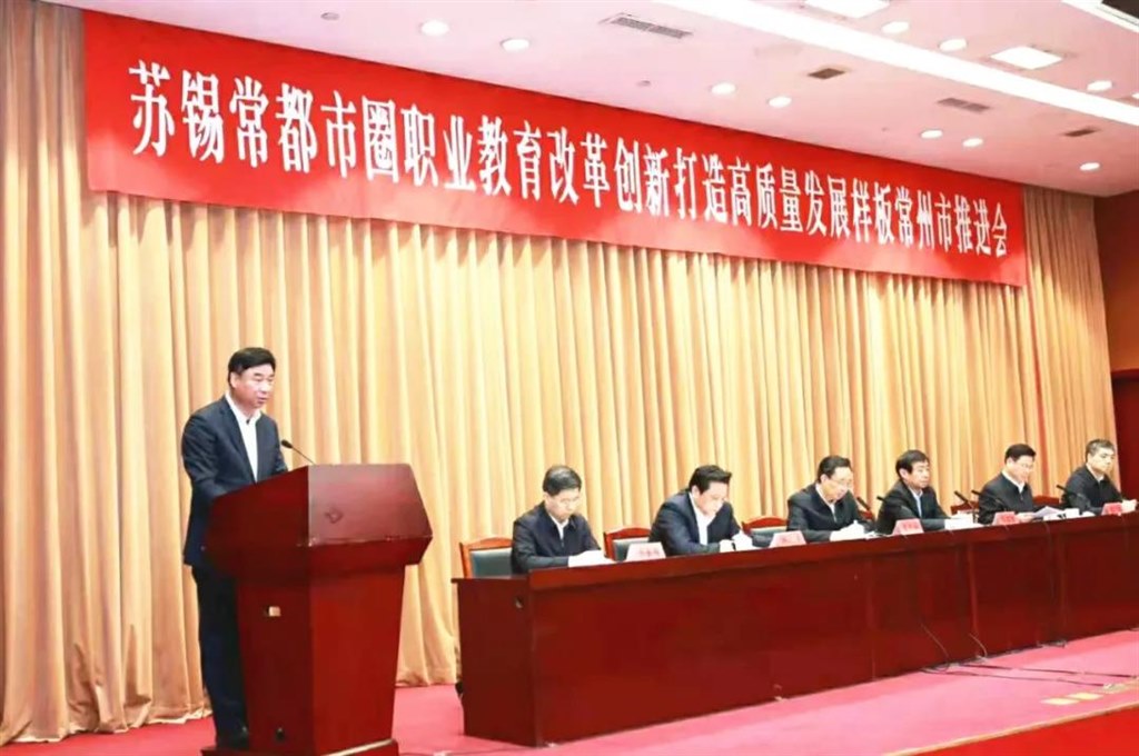 為貫徹落實部省共建啟動大會精神,加快推動(dòng)常(cháng)州職業教(jiāo)育改革創新,形成具有國際競爭力的中國特(tè)色(sè)職業(yè)教育(yù)的“常(cháng)州樣板”,11月20日上午,蘇(sū)錫常都市圈職業教育改革(gé)創新打造高質量發(fā)展樣板常州市推進會在市行政(zhèng)中心舉行(háng)。省委教育工委書記、省教育廳黨組書記、廳長葛道凱,市委書記(jì)齊家(jiā)濱出席大會(huì)並講話。市委常委、統戰(zhàn)部部長、科教城黨工(gōng)委書記韓(hán)九雲和市領導陳濤(tāo)、方國強、陳正春(chūn)參加會議。
